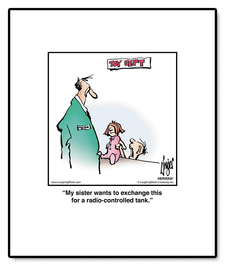 Share a laugh with friends and colleagues by displaying this hilarious HERMAN® comic in your home or office.