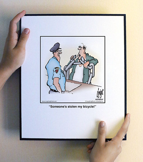 Share a laugh with friends and colleagues by displaying this hilarious HERMAN® comic in your home or office.