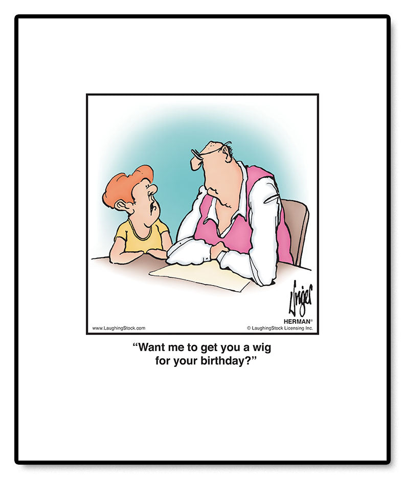 Share a laugh with friends and colleagues by displaying this hilarious HERMAN® comic in your home or office.