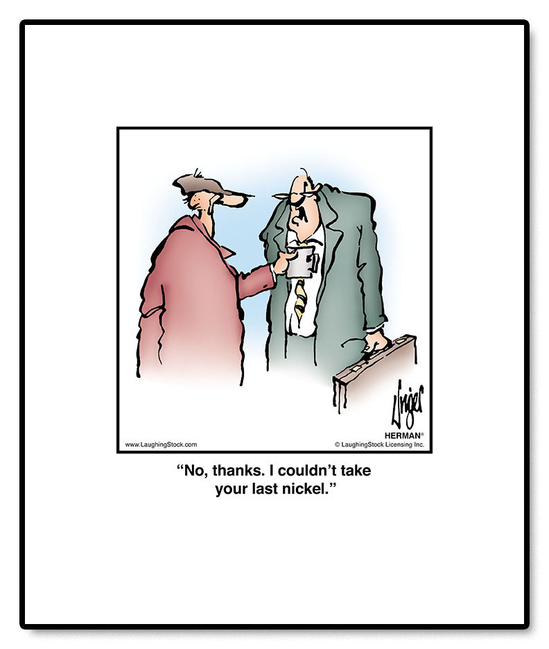 Share a laugh with friends and colleagues by displaying this hilarious HERMAN® comic in your home or office.