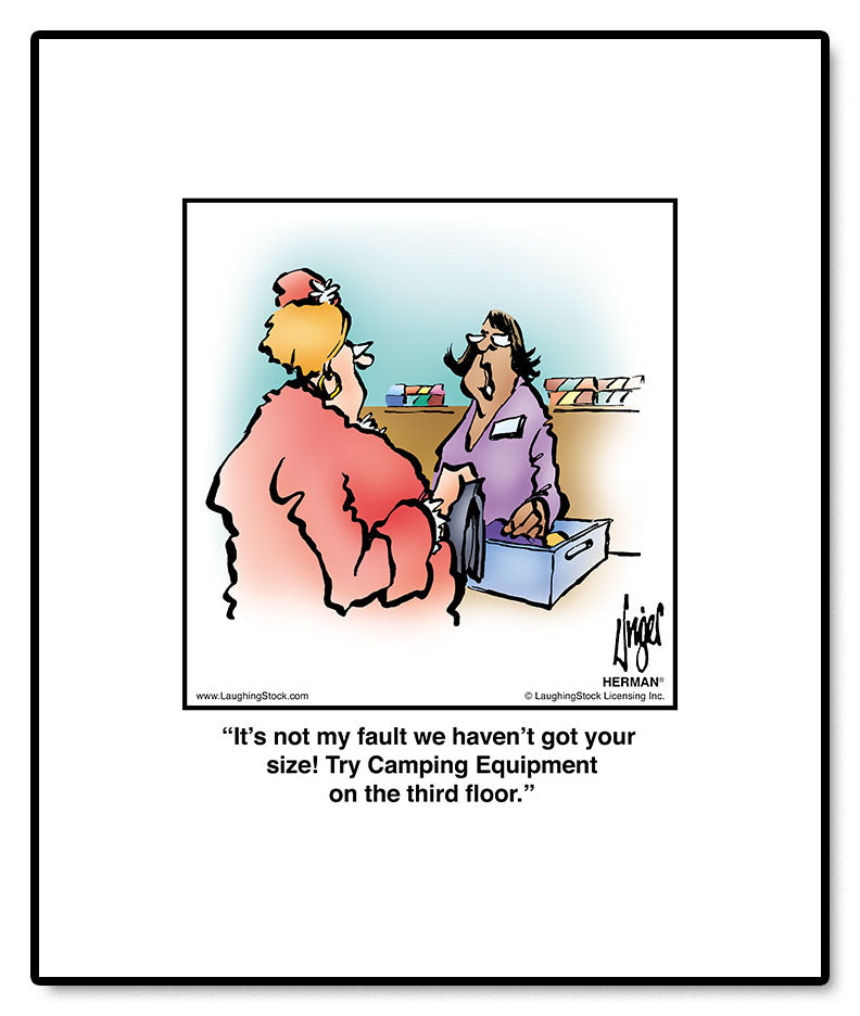 It’s not my fault we haven’t got your size! Try Camping Equipment on the third FLoor.