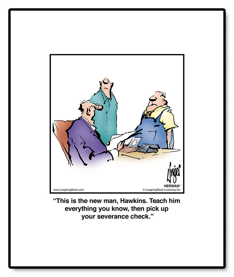 This is the new man, Hawkins. Teach him everything you know, then pick up your severance check.