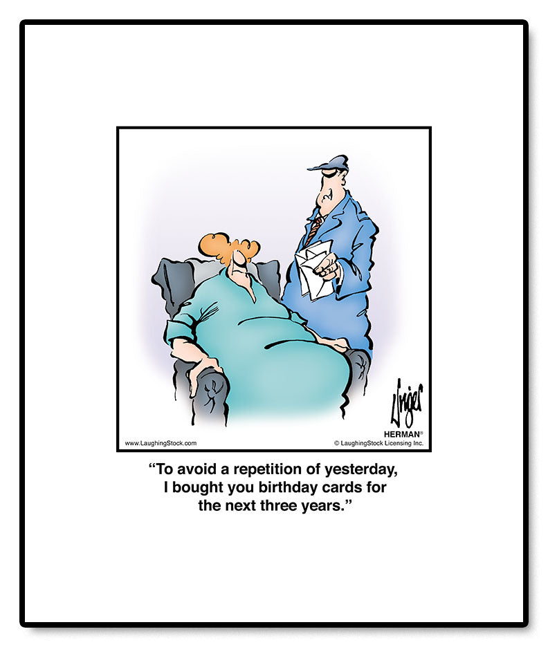 Share a laugh with friends and colleagues by displaying this hilarious HERMAN® comic in your home or office.