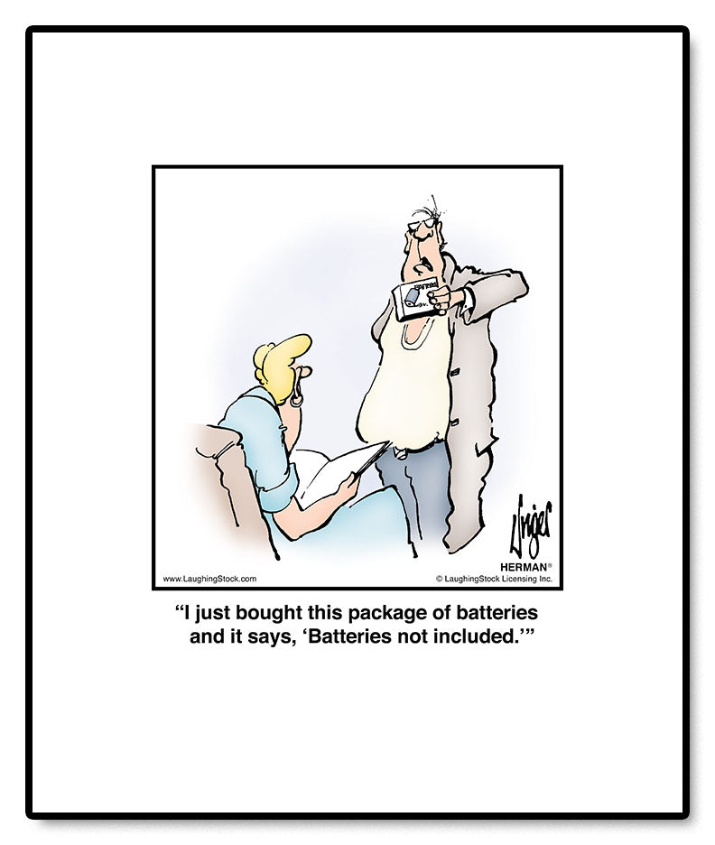 I just bought this package of batteries and it says, ‘Batteries not included.’